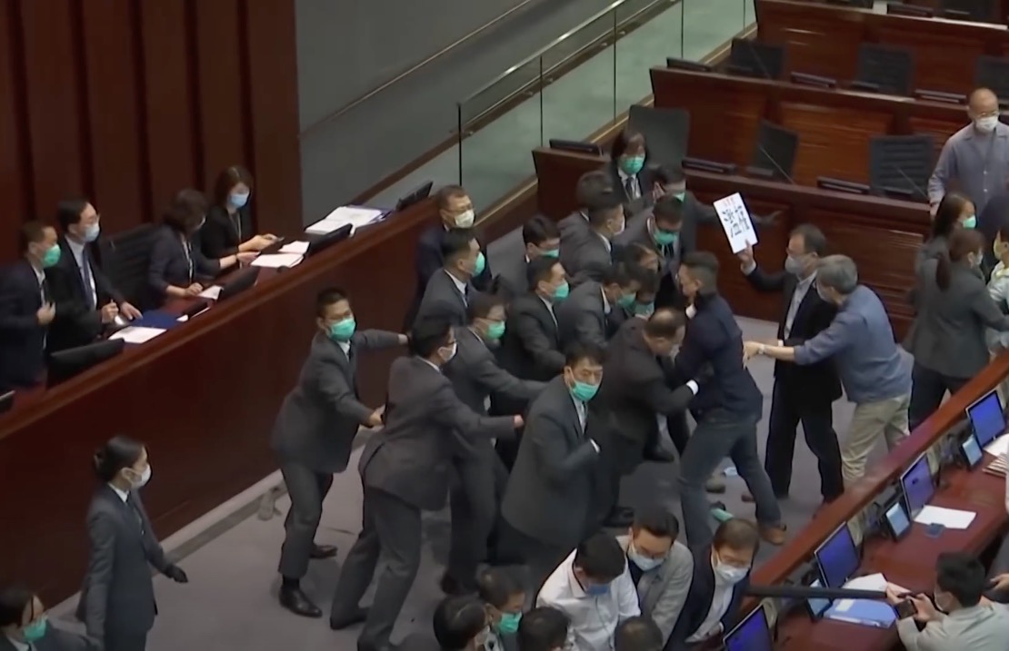 Een stemming in het parlement van Hongkong is uitgelopen in een duw- en trekpartij