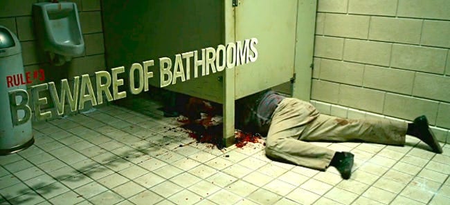 De vrouw gebruikte een openbaar toilet naast het restaurant waar ze had geluncht. Ze hoorde schuifelende geluiden in het hokje rechts van haar. Ze gluurde onder het wandje en zag een paar harige en blote benen die in haar richting stonden. Terwijl ze haar vriend probeerde te appen, begon de schuifelaar onder de wand door haar hokje in te kruipen. "Hij was aan het masturberen en hij kwam steeds verder naar binnen", verklaarde de geschrokken vrouw.