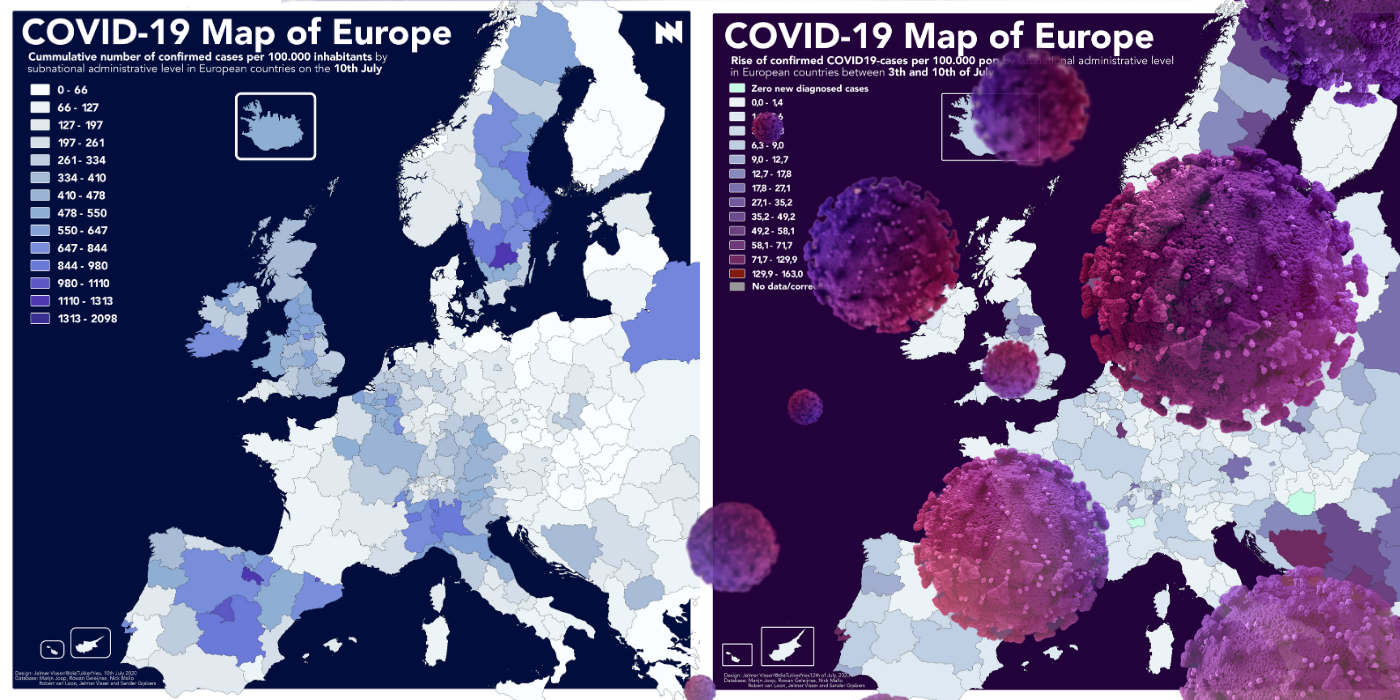 Toch nog behoefte aan een beetje goed nieuws? Nederland behoorde vorige week tot de landen met relatief gezien de minste nieuwe corona-diagnoses. In Drenthe werd zelfs helemaal geen nieuwe besmettingen gemeld. Iets wat zelfs op Europees niveau behoorlijk uitzonderlijk is. De groene kleur van Flevoland is te 'danken' aan een correctie in de cijfers van de GGD. Hierdoor daalde het officiële aantal Covid-19-patiënten in de jongste provincie van het land van 989 naar 983.