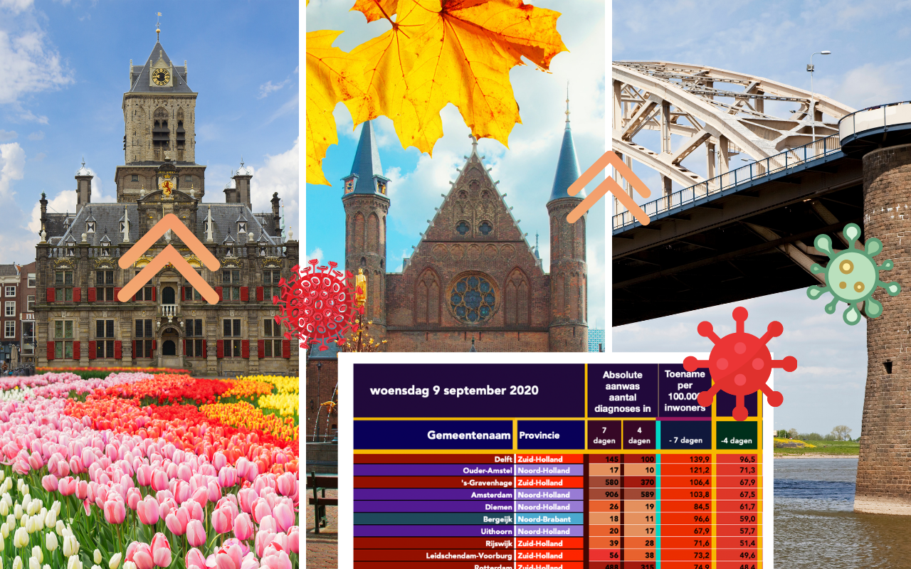 Benieuwd hoe de coronagolf bij jou in de gemeente om zich heengrijpt? Check dan onze interactieve gemeentetabel voor de toename tussen 6 en 9 september. Op de schuifkaart zijn de moyennes van 1 t/m 4 september afgezet tegen het tijdsvak 5 september t/m gisteren.