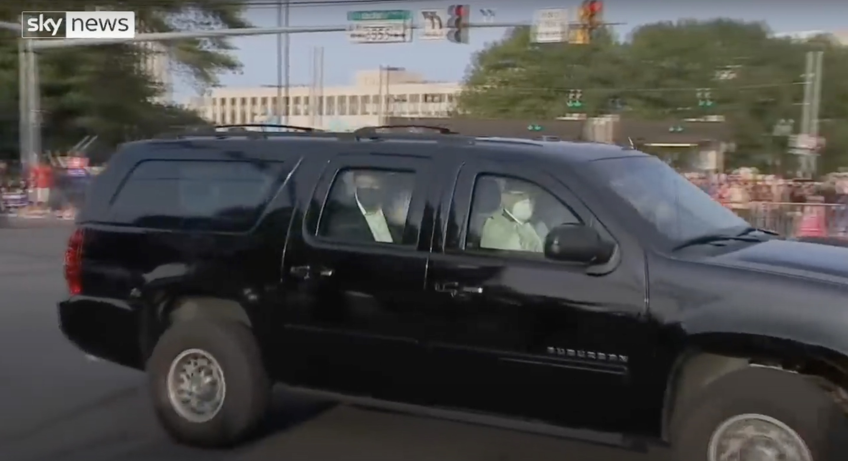 Trump droeg een mondkapje en zag er redelijk goed uit. De rit leverde hem wel wat kritiek op, omdat tegenstanders vonden dat hij hiermee zijn chauffeurs en beveiligers in gevaar bracht. Volgens het Witte Huis valt dat wel mee en zijn er genoeg maatregelen genomen om iedereen te beschermen.