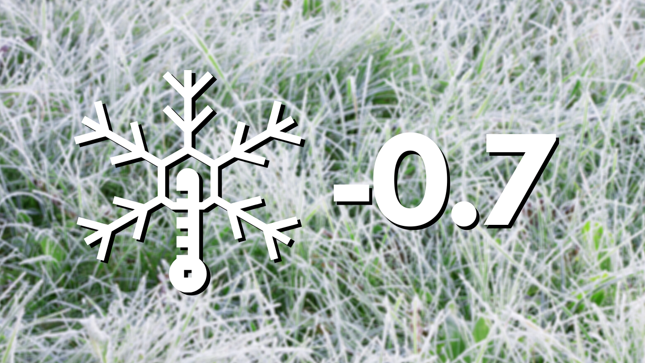 Vannacht werd ook de laagste temperatuur op 10 centimeter hoogte waargenomen op Twenthe. Rond het weerstation, dat is gevestigd op vliegveld Twente in de buurt van Enschede, koelde het aan de grond af tot -3,2 graden.