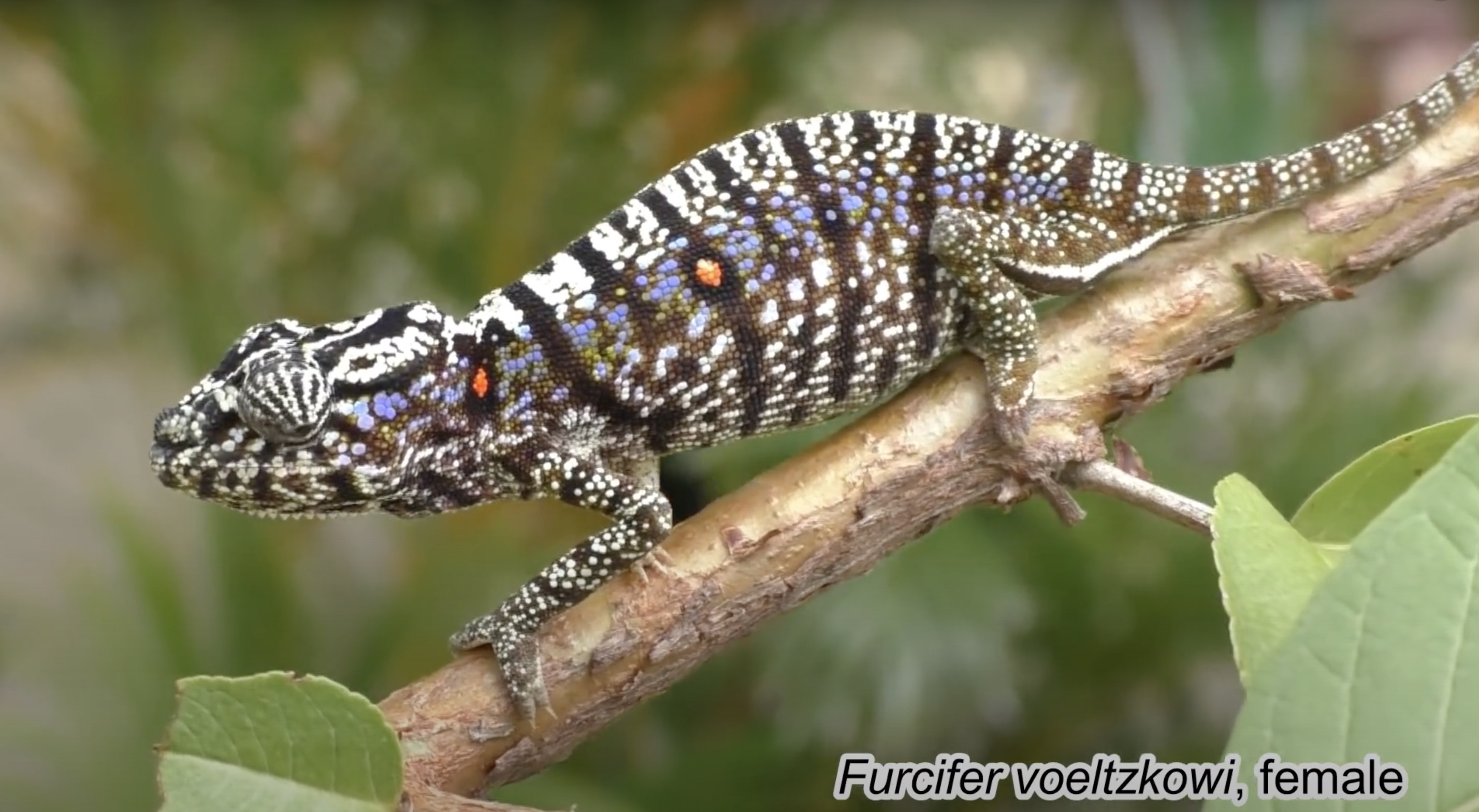 Het gaat om de Voeltzkow’s kameleon die in 1913 voor het laatst werd gezien. Lange tijd dachten biologen dat deze soort was uitgestorven, maar nu dook hij toch weer op. In een tuin van een hotel in een afgelegen dorpje van Madagaskar werd een groep van drie mannetjes en vijftien vrouwtjes ontdekt. Het was de eerste keer in de geschiedenis dat er vrouwtjes zijn vastgelegd.
