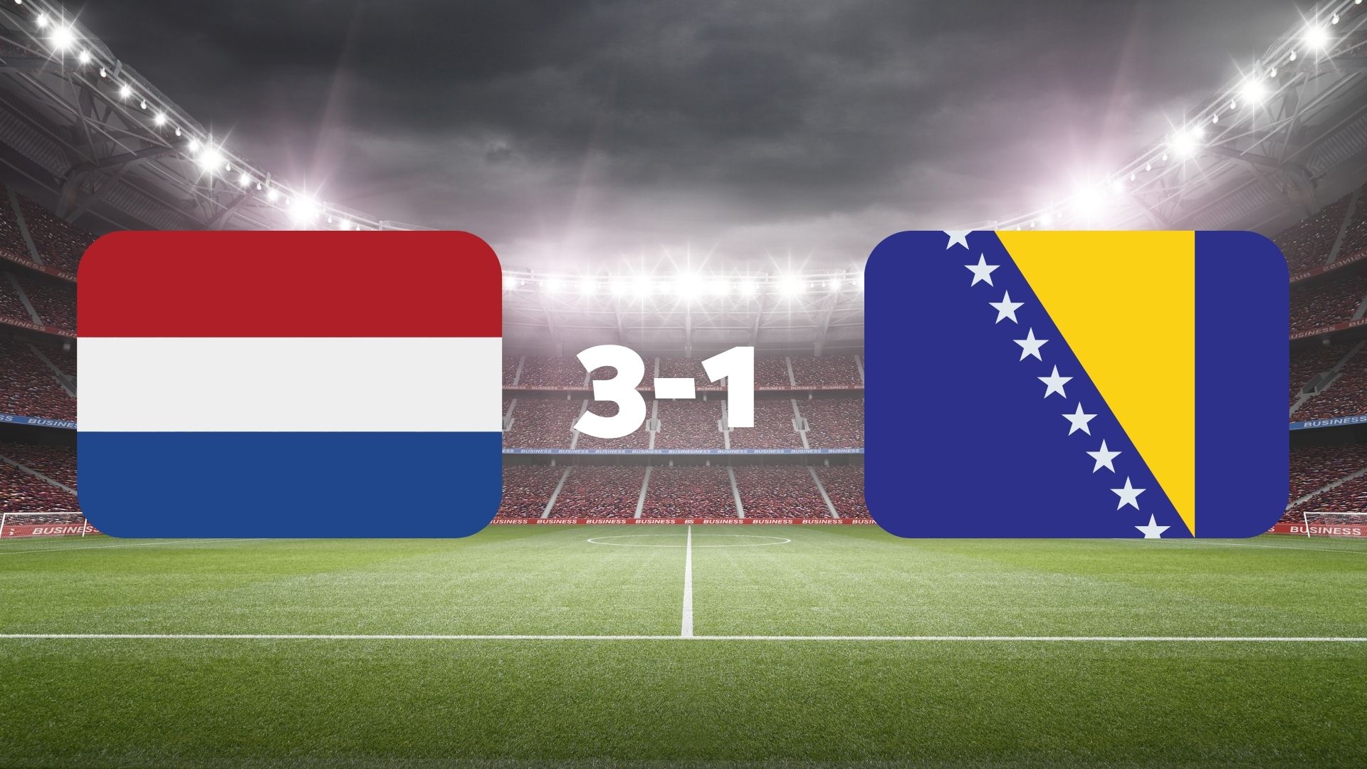 Tien minuten na rust kwam de 3-0, deze keer door Memphis Depay, weer met een voorzet van Dumfries. In de 63e minuut kreeg Bosnië het toch nog voor elkaar bij het doel te komen en schoot Smail Prevljak voor de 3-1.
