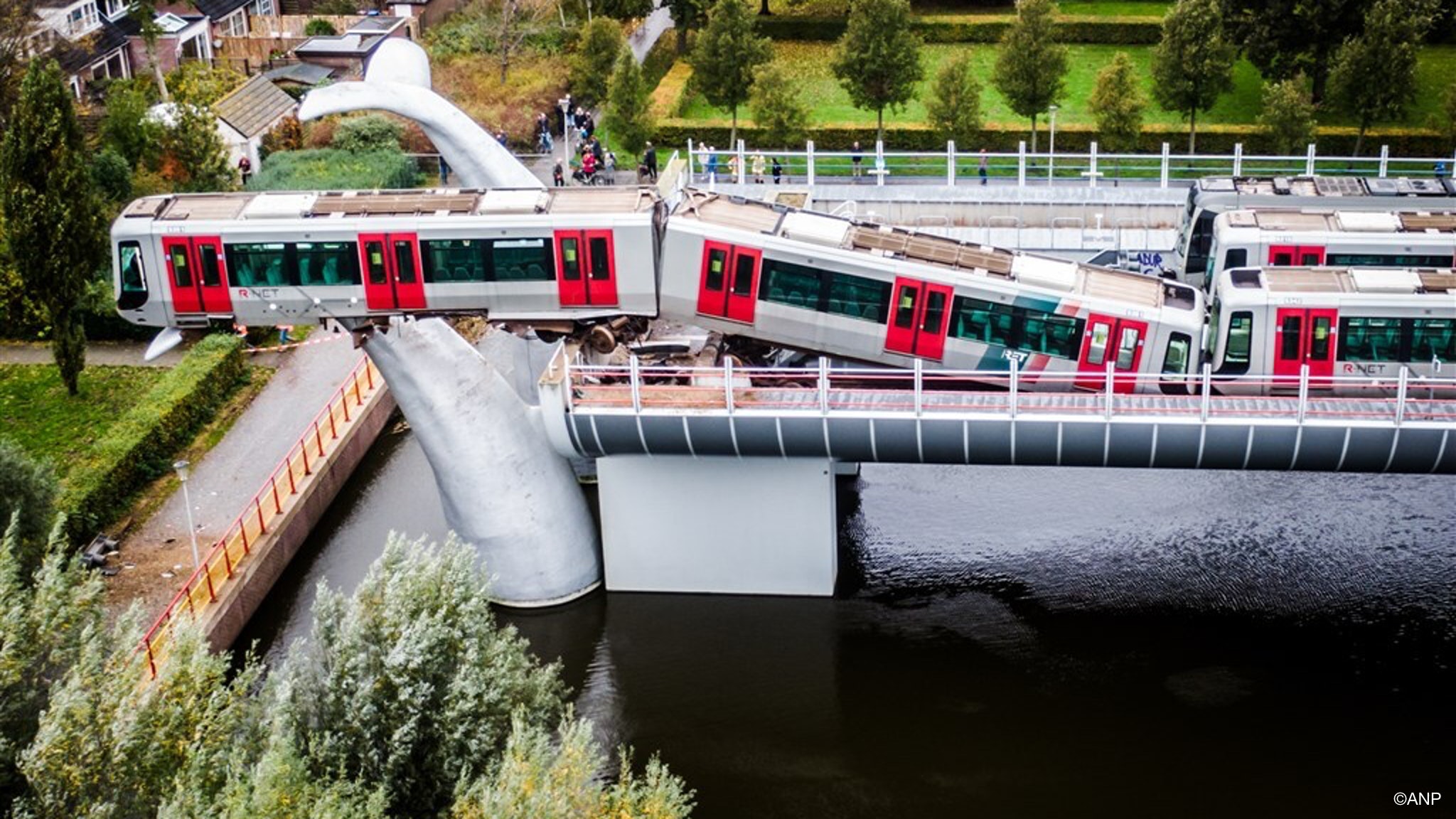 Toen de beelden van het gecrashte RET-voertuig op het kunstwerk de hele wereld over gingen, besloten de modelbouwers dat dit voorval niet mocht ontbreken in hun mini-010. Bij RTV Rijnmond vertelt Miniworld Rotterdam dat ze de voorbije weken flink aan de bak zijn geweest met gips, hout, schuurmachines en verf.