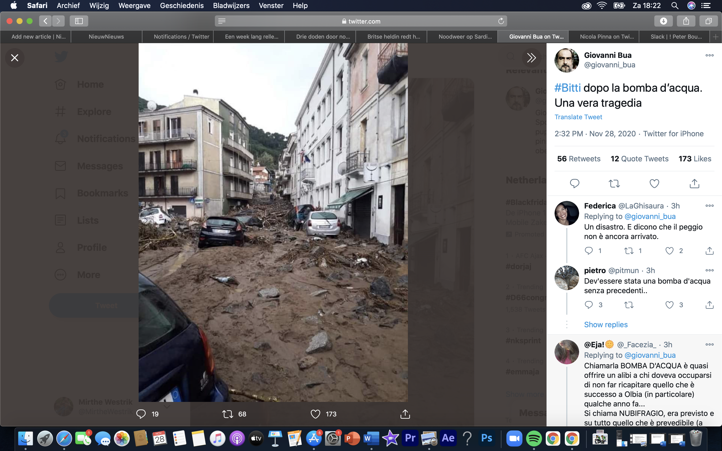 Modderstromen kolken door de straten