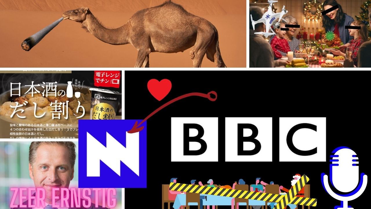 Met vandaag dromedarissen verdacht van hasjsmokkel, Wibi Soerjadi is woest en Belgische politiedrones surveilleren in de straten tijdens het kerstdiner. En groot nieuws: we hebben internationale roem te pakken. Wie middenin de nacht naar BBC World Radio luisterde, hoorde een bekend nieuwsmerk voorbij zoeven. De redacteur van dienst van NewNews sprak in de uitzending over de kerstlichtvergunning in Amsterdam.