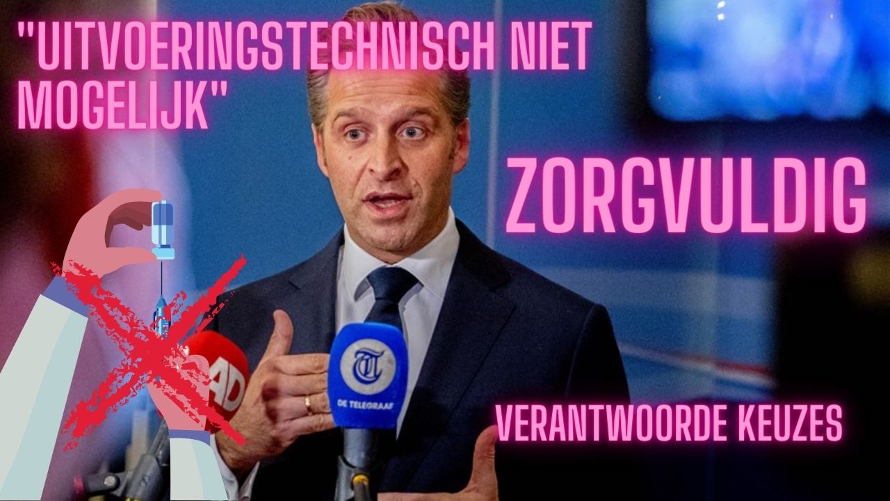 De geprikte V-daydatum van 8 januari vindt de minister, die het landsbelang boven het partijbelang stelde, bovendien zelf 'eigenlijk best al heel erg snel'. Want het blijven natuurlijk toch malle weken die voorbijschieten rond de feestdagen in ons mopperkoppenlandje. Het Brabantse Veghel krijgt de eer om als decor te fungeren voor het allerlaatste prikprimeurmoment in de EU. Maar daarna komt het goed! Als het aan Hugo de Jonge ligt gaat Nederland daarna zo snel als mogelijk aan de bak terwijl dit tegelijkertijd 'zo zorgvuldig als nodig' gebeurt.