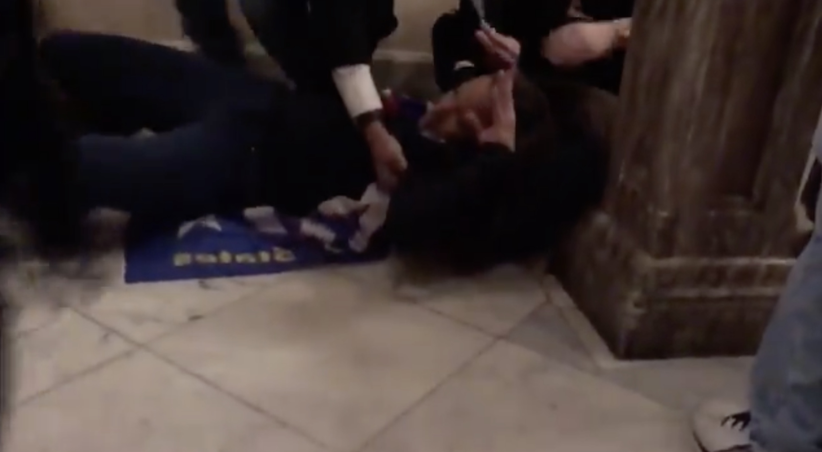 In het Capitool is een vrouw neergeschoten tijdens de bestorming door Trump-supporters. Op een video is te zien hoe er in een trappenhuis plots een schot klinkt en een vrouw inzakt. Het is nog onduidelijk wie er geschoten heeft.