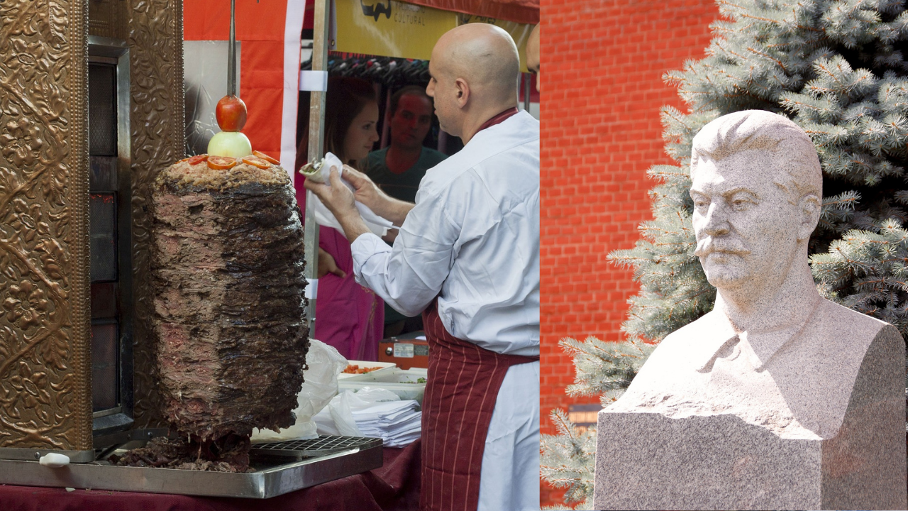 Een shoarmatent in Moskou heeft onder druk van de autoriteiten een dag na de opening de deuren alweer moeten sluiten. Boven de nu gesloten deuren van dit restaurant hing een afbeelding van Sovjetleideronderdrukker Josef Stalin, wiens dictatoriale bewind wordt gekenmerkt door massale onderdrukking, werkkampen en honger. Echter, veel Russen zien hem tegelijkertijd ook als de heldhaftige man die het leger van Nazi-Duitsland tegenhield en versloeg.