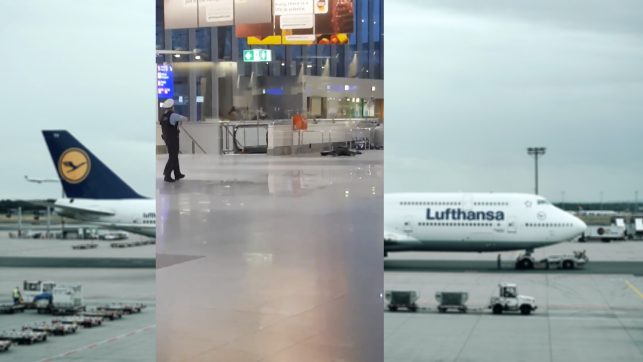 Een deel van de grootste Duitse luchthaven (in Frankfurt am Main) is vanavond uren gesloten geweest nadat er een bommelding was gedaan. Getuigen zeiden tegen de politie dat een man en een vrouw rond 18.00 uur hun koffer bij de paspoortcontrole hadden neergezet, om vervolgens "Allahoe akbar" te roepen.
