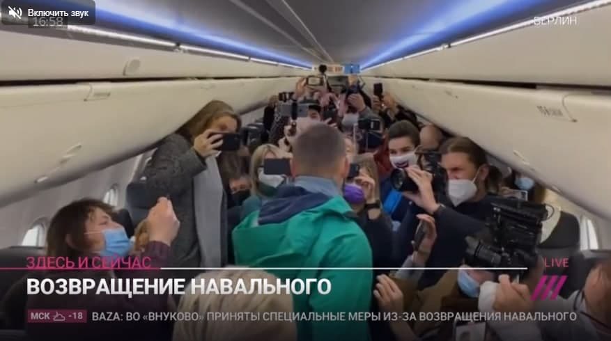 In een vliegtuig vol pers is Poetins aartsvijand en oppositieleider Alexei Navalny vanmiddag vanuit Berlijn opgestegen richting de Russische hoofdstad Moskou. Hij vertelde verslaggevers verheugd te zijn met zijn terugkeer. De vraag is hoe hij ontvangen gaat worden door de Russische autoriteiten. Donderdag werd gemeld dat hem een onmiddellijke arrestatie te wachten staat.