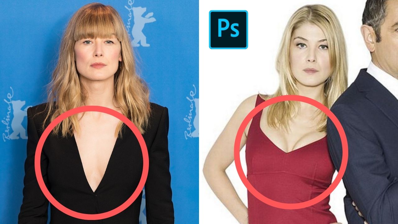 Rosamund Pike kreeg virtuele borstvergroting voor filmposter
