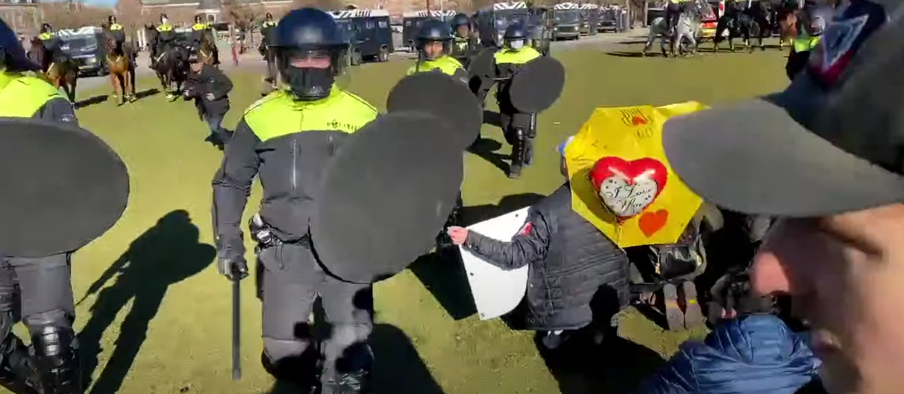 UPDATE: Demonstranten weigerden te luisteren naar waarschuwingen en bevelen van de politie, meldt de gemeente Amsterdam op Twitter. Daarom zal de ME in actie komen om het plein te ontruimen.