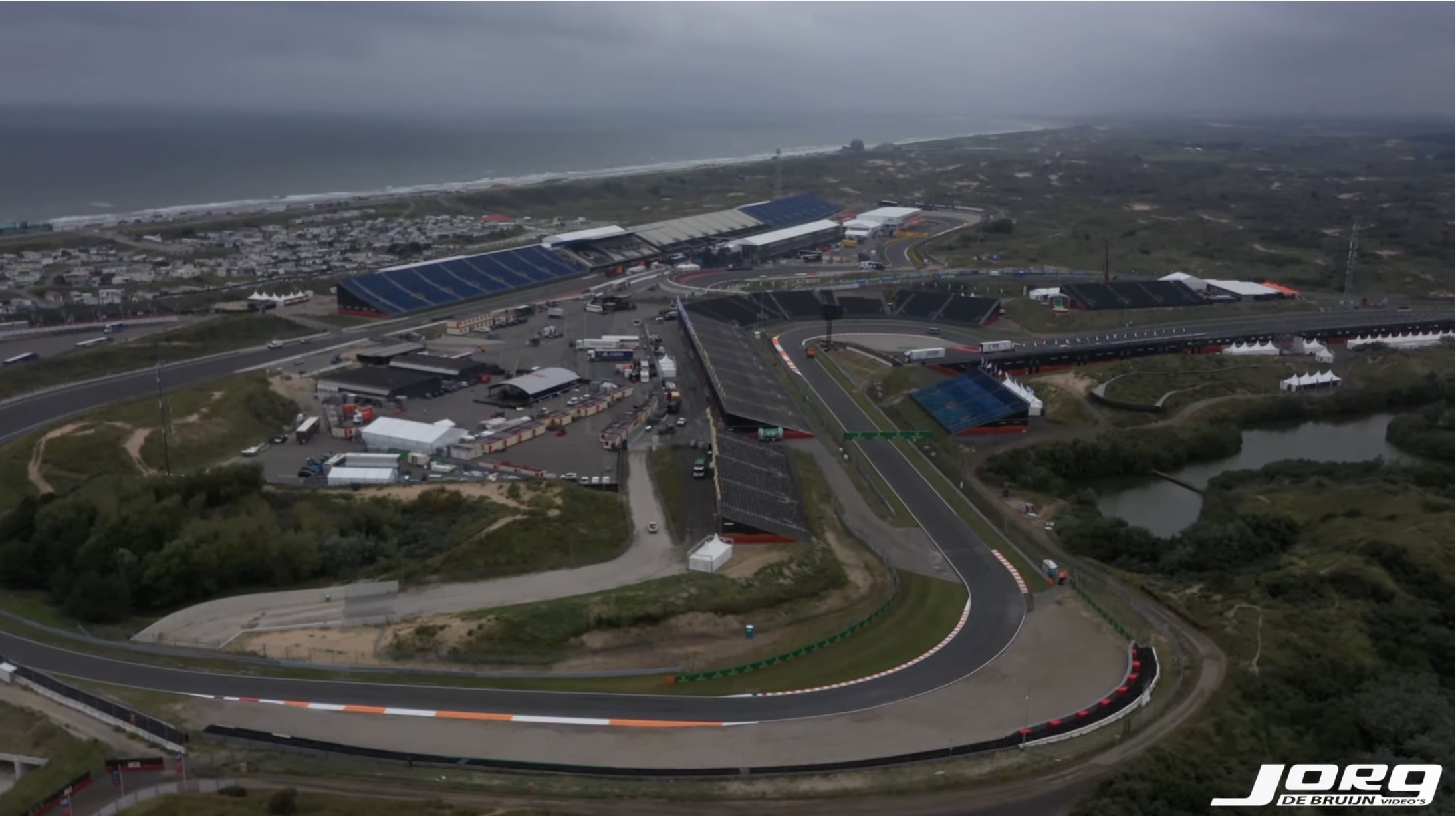 Dronebeelden laten zien hoe het circuit van Zandvoort er deze maandag bij ligt, waar er gewerkt wordt aan de opbouw voor komend weekend en hoe strak en schoon de campings nu nog zijn. Ook de karavaan van vrachtwagens van alle teams is gearriveerd en staat op de start/finish naast de pitstraat uit te laden.