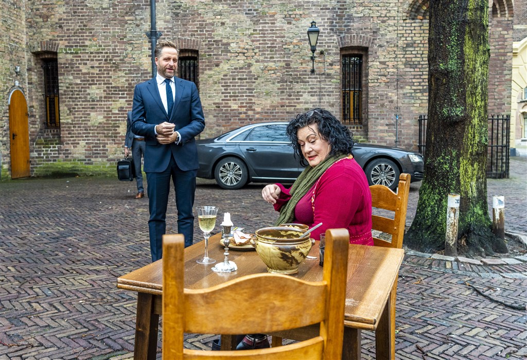 Demissionair coronaminister Hugo de Jonge verstoorde vanmorgen een photoshoot van die andere veelgevraagde mediapolitica, Caroline van der Plas (BBB). Van der Plas zat quasi-argeloos te 'ontbijten' op het Binnenhof voor een fotosessie inzake een kookboek (?), toen De Jonge het tafereel verstoorde op zijn weg naar een corona-overleg.
