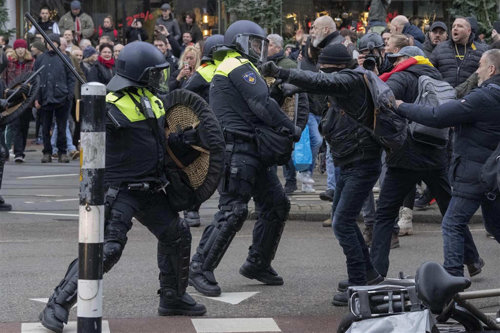 Vier agenten zijn gewond geraakt toen ter hoogte van de Paulus Potterstraat enkele demonstranten door een blokkade van agenten heen probeerde te breken. Bij deze actie is een politiehond ingezet om de agenten te ondersteunen. De agenten maken het naar omstandigheden goed en de verdachten konden worden aangehouden.