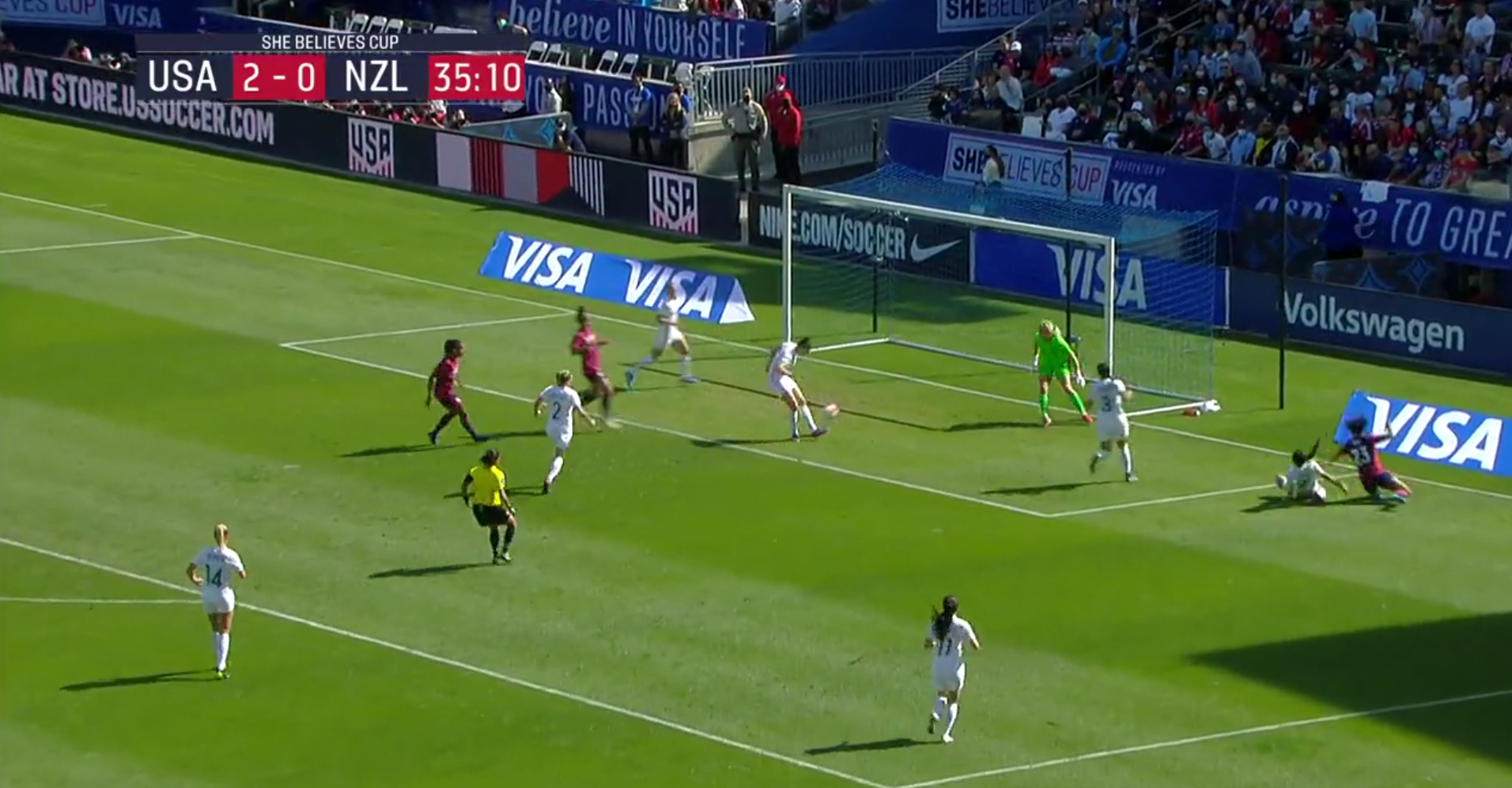 In de vijfde minuut van de wedstrijd van het Nieuw-Zeelandse team tegen de Amerikaanse dames het mis. De verdedigster probeerde een voorzet te parreren maar werkte deze met een volley in het eigen doel. Gelukkig voor de Nieuw-Zeelandse kreeg ze amper een minuut later de kans om haar onhandige eigen doelpunt goed te maken door een tweede voorzet weg te werken. Ook dit liep echter niet zoals voorzien en de kopbal eindigde met een keurig stuit wederom in het eigen net.