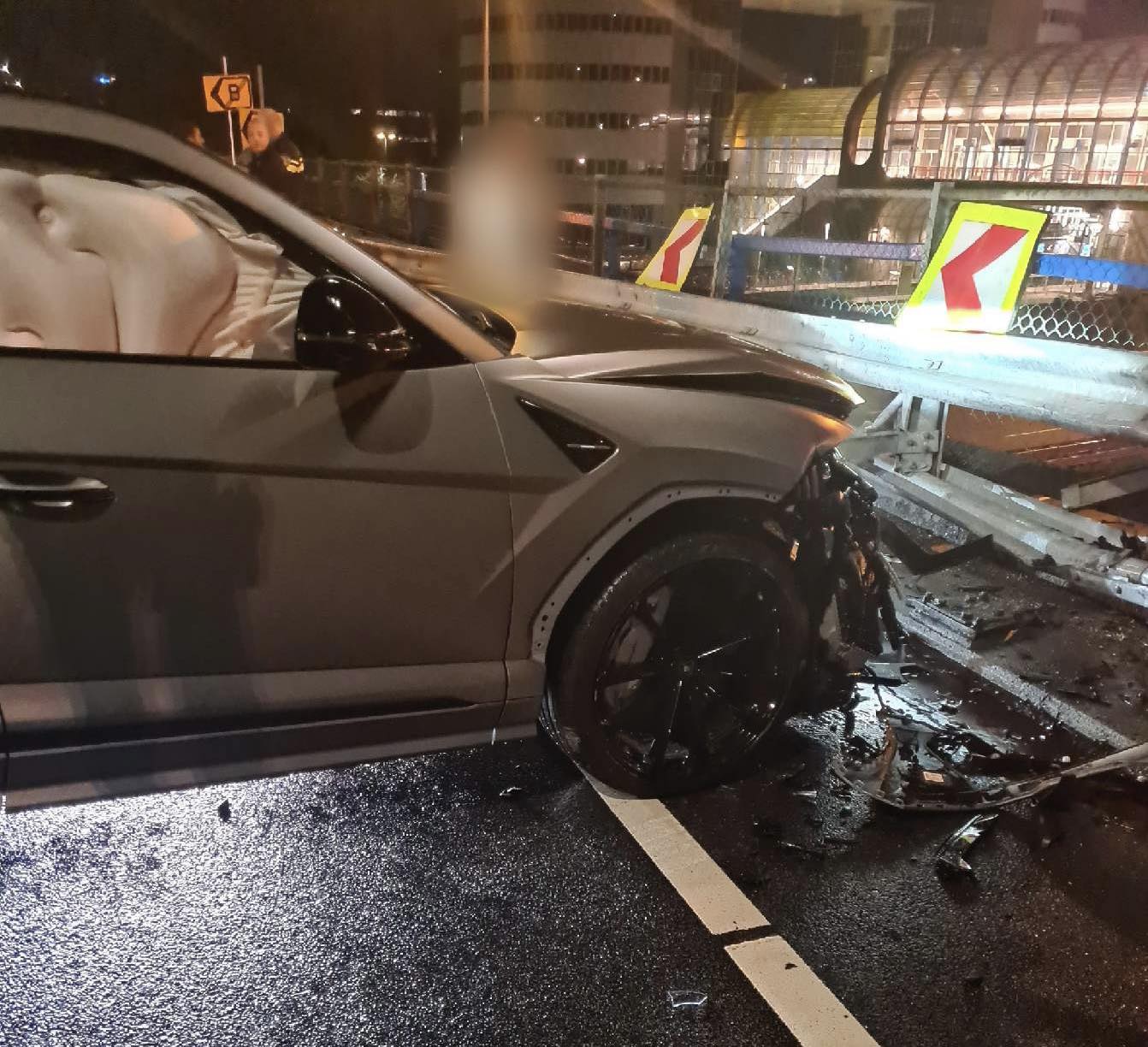 ''U gaat hier rechtdoor, kan dat?'', vraagt de Zoetermeerse politie zich af. De bestuurder probeerde het voertuig bovenaan de A12-afrit Afrikaweg door de vangrail te sturen. Dat bleek vies tegen te vallen. ''De bestuurder van deze Duitse Lamborghini Urus dacht dat hij hier wel rechtdoor kon rijden.'' De bedwelmde bestuurder bleef zelf ongedeerd, en dat is natuurlijk het belangrijkste. Ook als je net een Lambo van een kwart miljoen naar zijn grootje hebt gereden.
