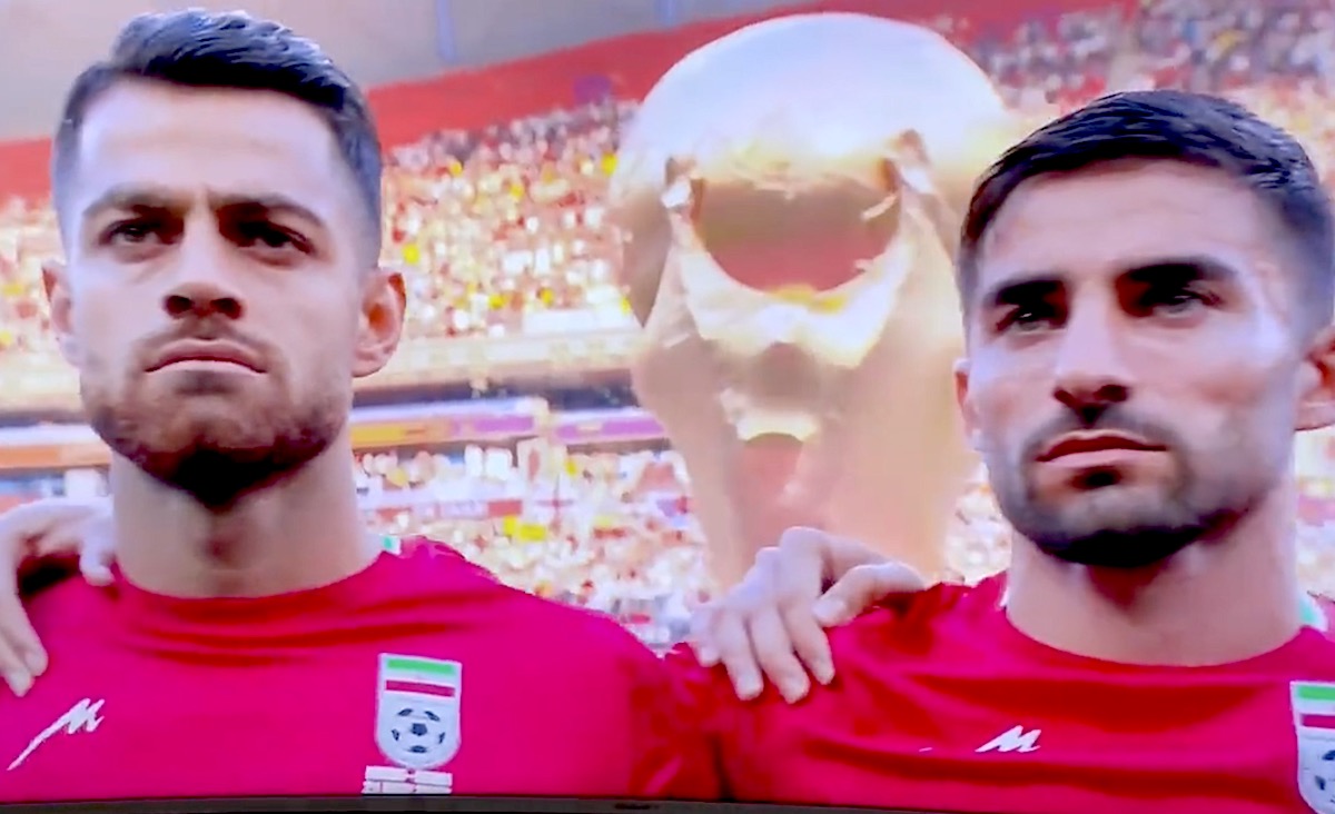 Hoewel de FIFA wanhopig probeert om politieke protesten van het WK-veld te weren, viel de start van het duel tussen Engeland en Iran vandaag op door een statement van Iran. De spelers zongen het volkslied van hun eigen land niet mee als protest tegen het heersende islamitische regime.