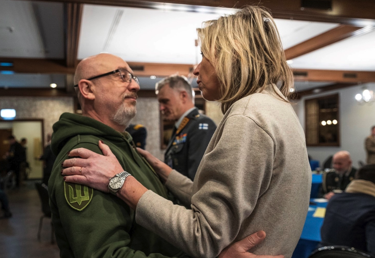 Foto: Defensie; "Een warm weerzien tussen de Oekraïense minister van Defensie Aleksi Reznikov en Ollongren."