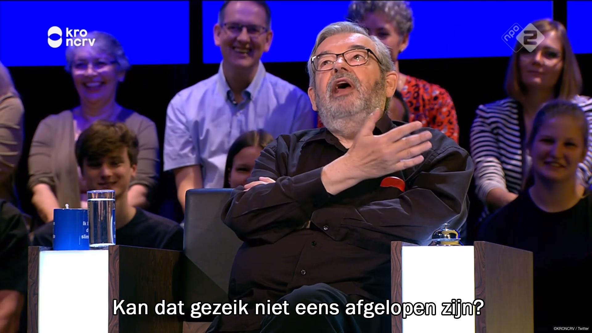 ''Ik moet constateren dat wij allebei nog leven en dat wij voorlopig ook niet van plan zijn om op te houden met leven'', reageert Van Rossem cynisch. Hij stoort zich aan de geruchten rondom de TV-quiz en stelt dat er in feite sprake is van bejaardendiscriminatie. ''Kunnen die oude lullen nou niet eens een keer opsodemieteren?, Ik vind het eerlijk gezegd nogal onbeleefd.''
